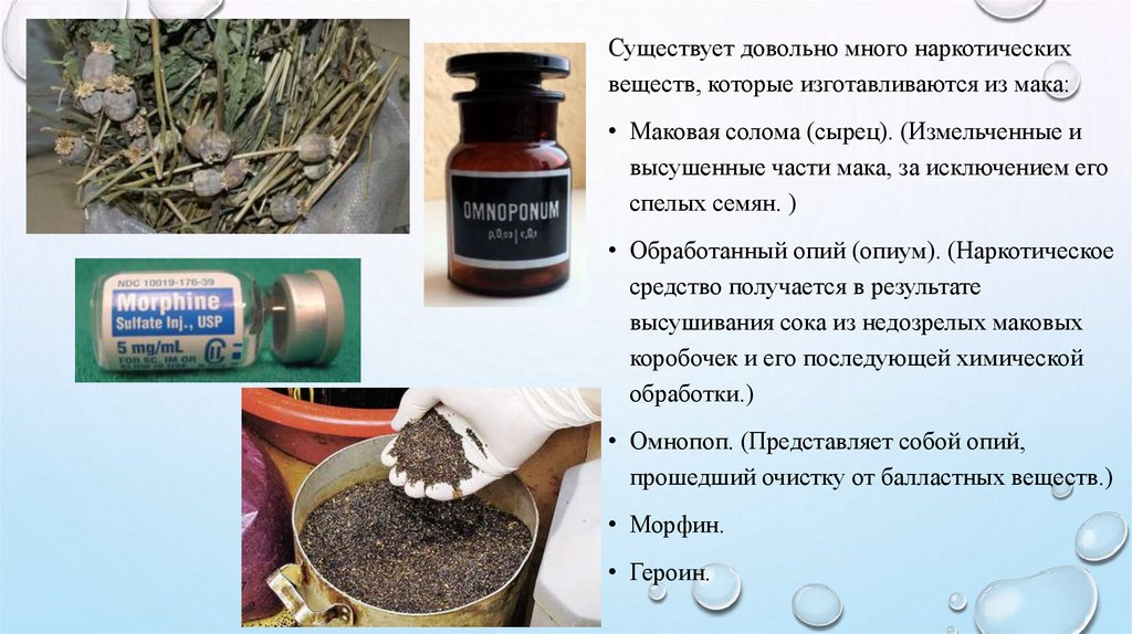 Существует довольно много наркотическихвеществ, которые изготавливаются из мака: