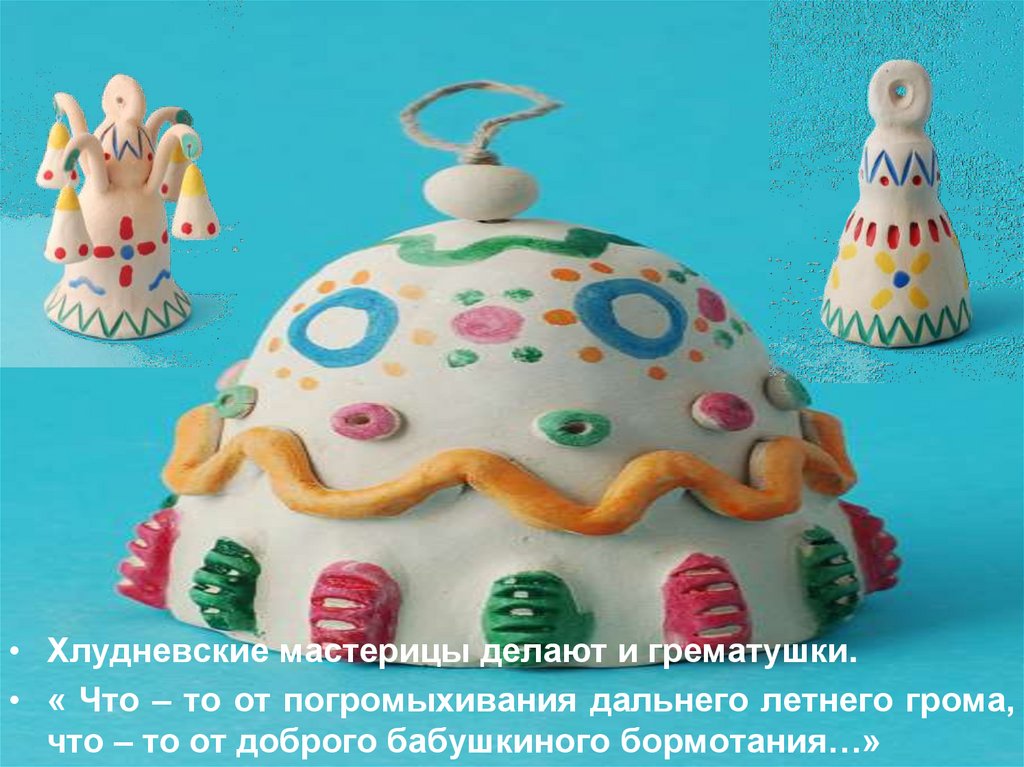 • Хлудневские мастерицы делают и грематушки.• « Что – то от погромыхивания дальнего летнего грома,