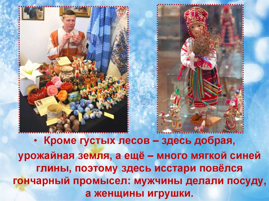 • Кроме густых лесов – здесь добрая,урожайная земля, а ещё – много мягкой синей