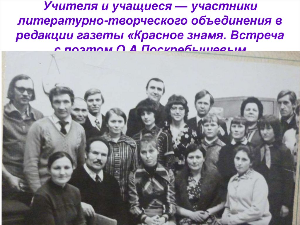 Учителя и учащиеся — участники литературно-творческого объединения в редакции газеты «Красное знамя. Встреча с поэтом