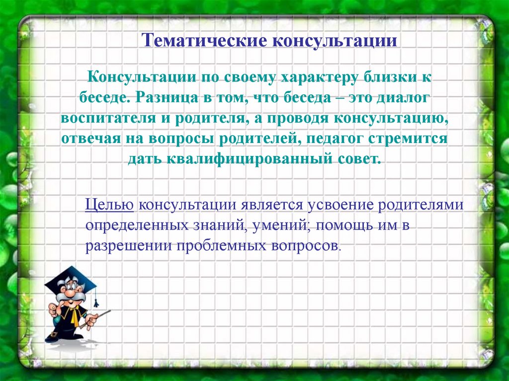 Тематические консультацииКонсультации по своему характеру близки к