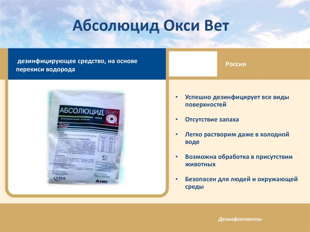Абсолюцид Окси Ветдезинфицирующее средство, на основе