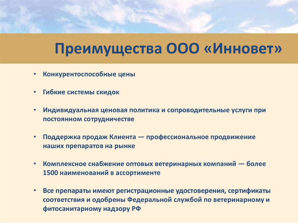 Преимущества ООО «Инновет»• Конкурентоспособные цены