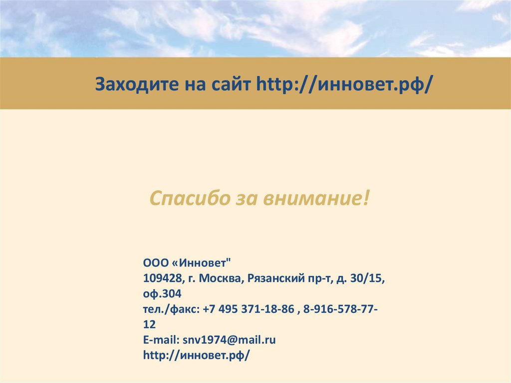 Заходите на сайт http://инновет.рф/Спасибо за внимание!
