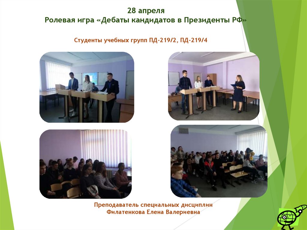 28 апреляРолевая игра «Дебаты кандидатов в Президенты РФ»
