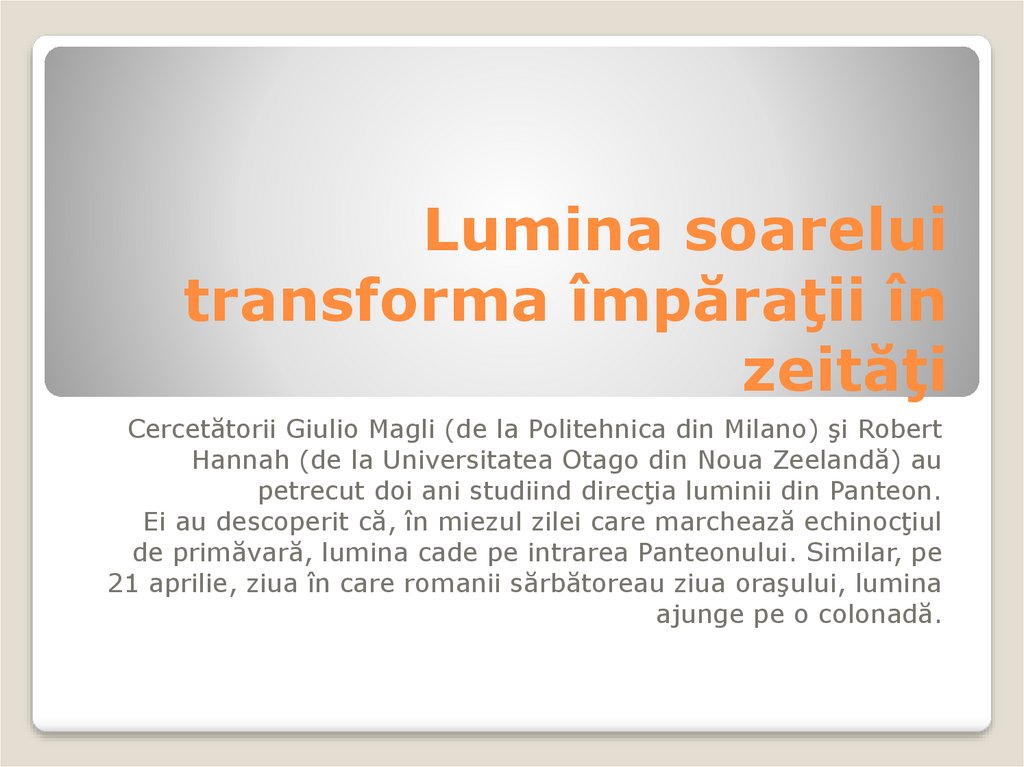 21 aprilie, ziua în care romanii sărbătoreau ziua oraşului, lumina