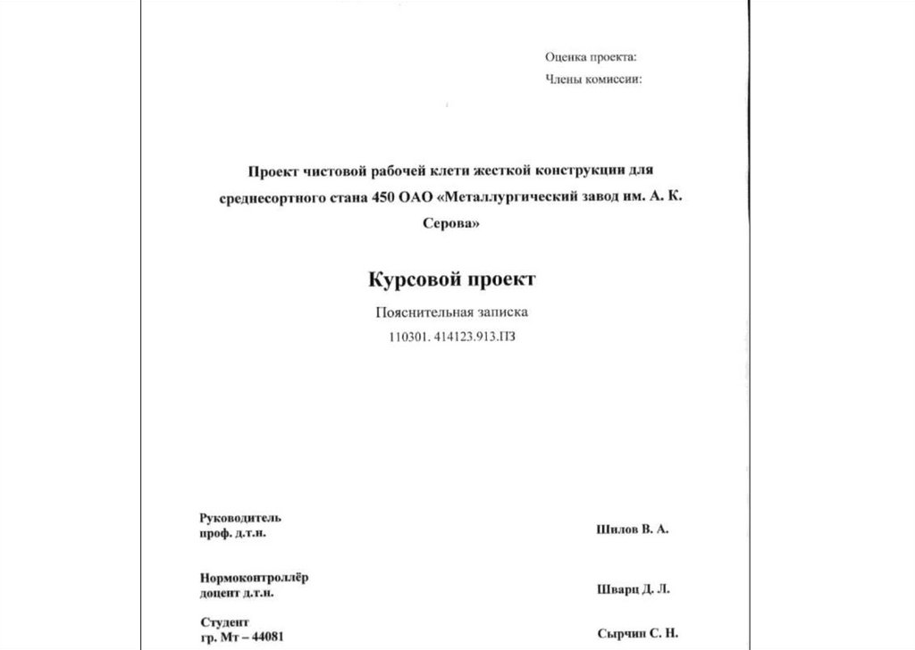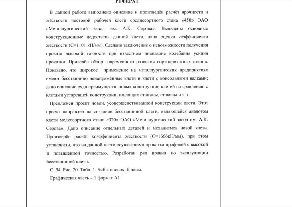 Проект чистовой рабочей клети жесткой конструкции для среднесортного стана 450