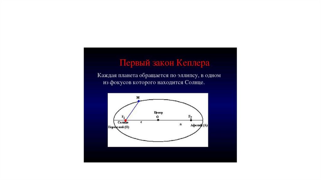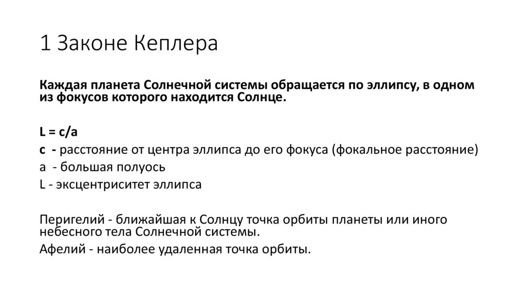 1 Законе КеплераКаждая планета Солнечной системы обращается по эллипсу, в одном
