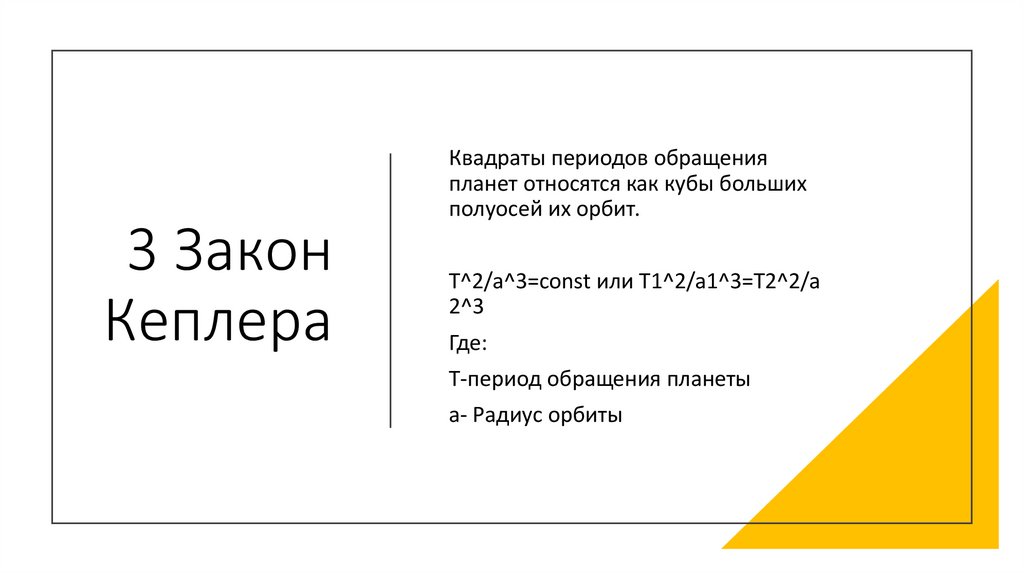 T^2/a^3=const или T1^2/a1^3=T2^2/a