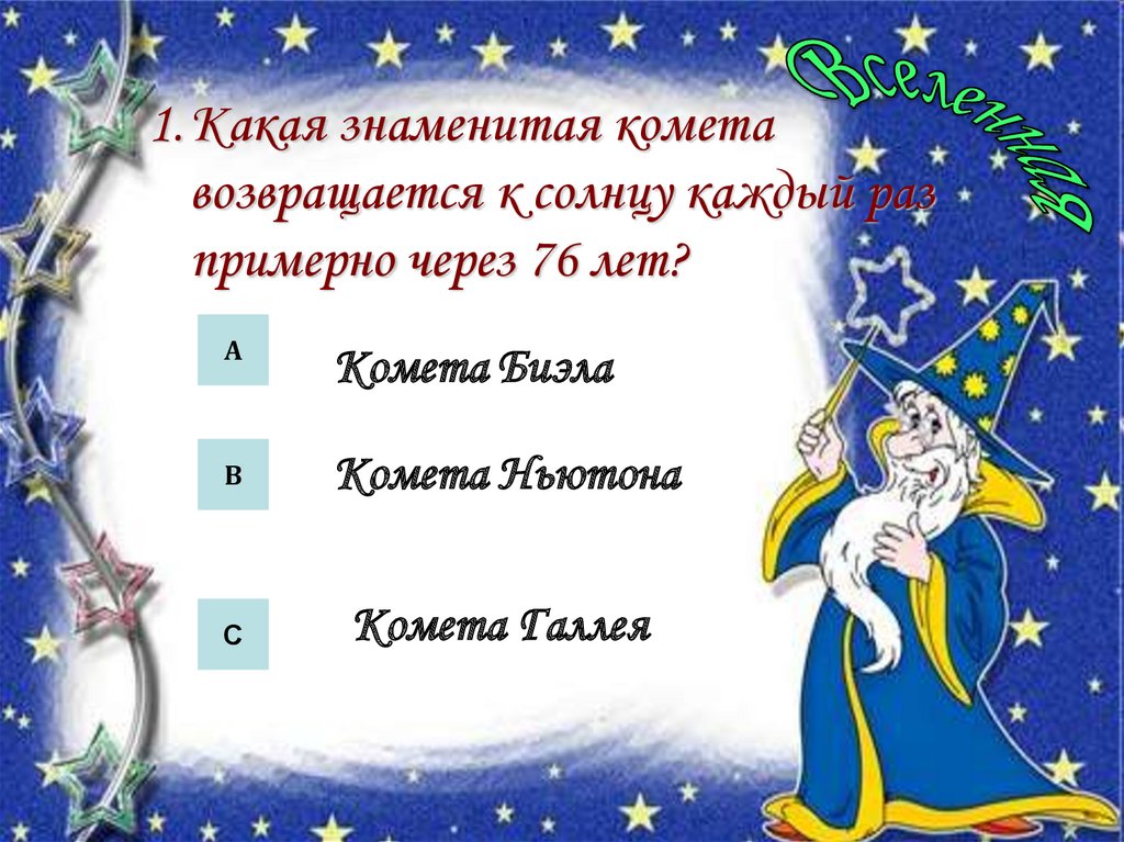 1.Какая знаменитая кометавозвращается к солнцу каждый раз