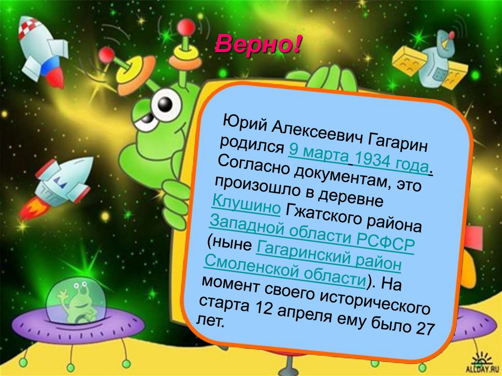 11. Сколько полных лет былоЮрию Гагарину на момент своего
