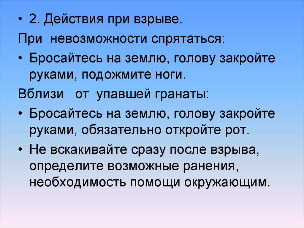 • Не вскакивайте сразу после взрыва,