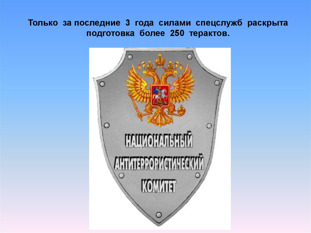 Только за последние 3 года силами спецслужб раскрытаподготовка более 250 терактов.