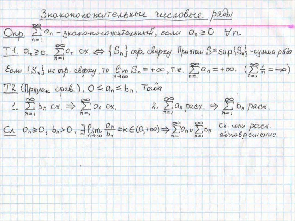 Числовые ряды. Признаки сходимости числовых рядов. Лекция 12
