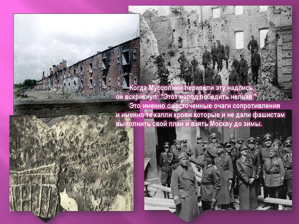Когда Муссолини перевели эту надпись,он вскрикнул: "Этот народ победить нельзя."