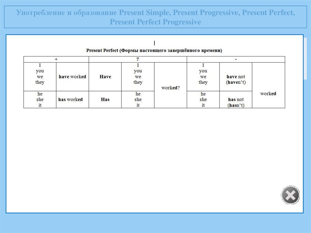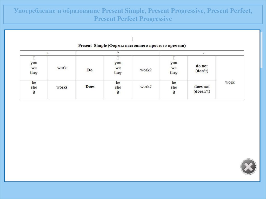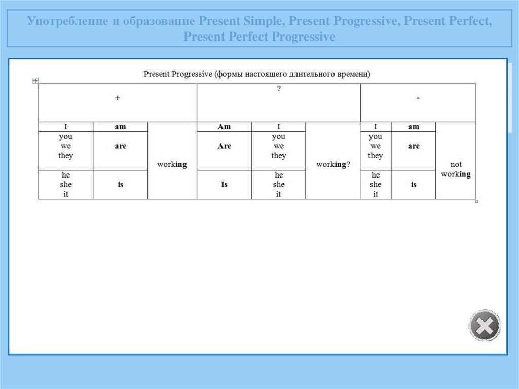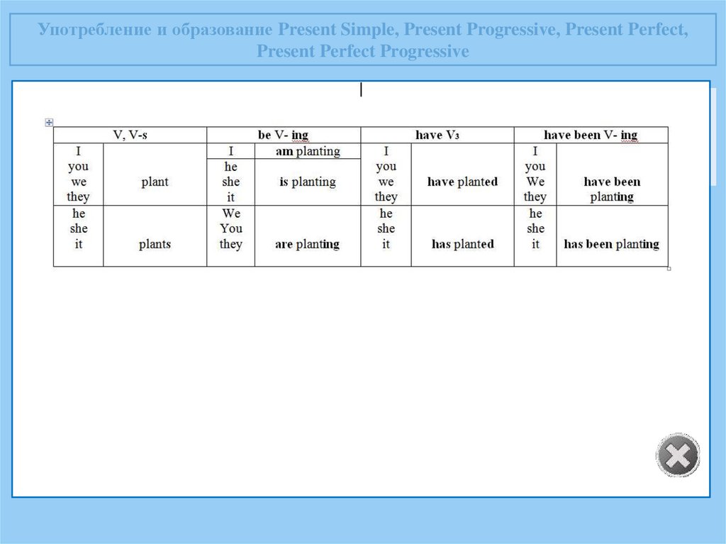 Употребление и образование Present Simple, Present Progressive, Present Perfect,Present Perfect Progressive