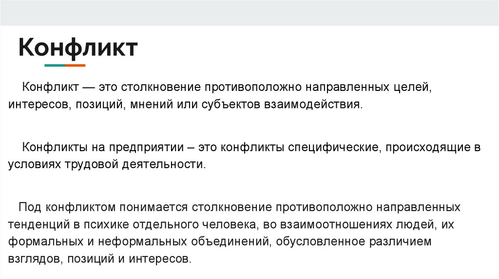 Под конфликтом понимается столкновение противоположно направленных