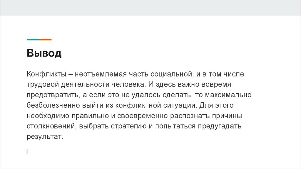 ВыводКонфликты – неотъемлемая часть социальной, и в том числе