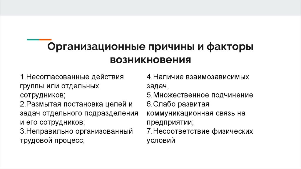 Организационные причины и факторывозникновения