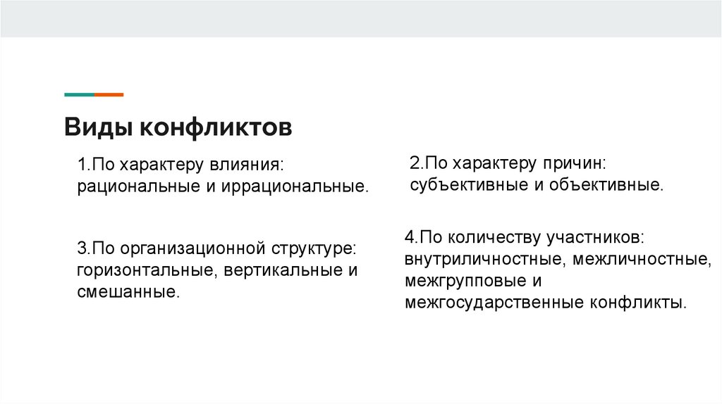 Виды конфликтов2.По характеру причин: