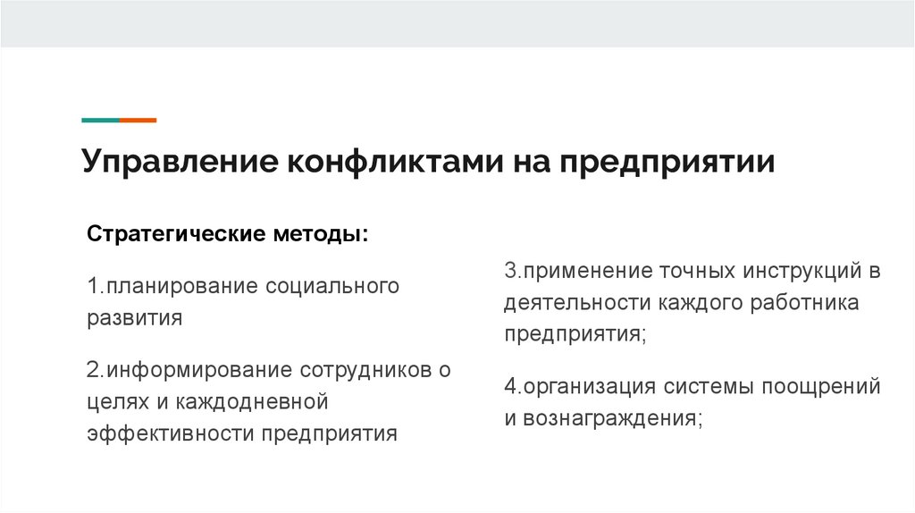 Управление конфликтами на предприятииСтратегические методы: