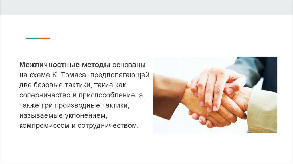 Межличностные методы основанына схеме К. Томаса, предполагающей