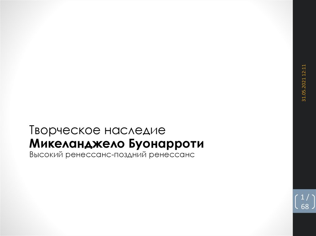 Творческое наследие Микеланджело Буонарроти. Высокий ренессанс – поздний ренессанс
