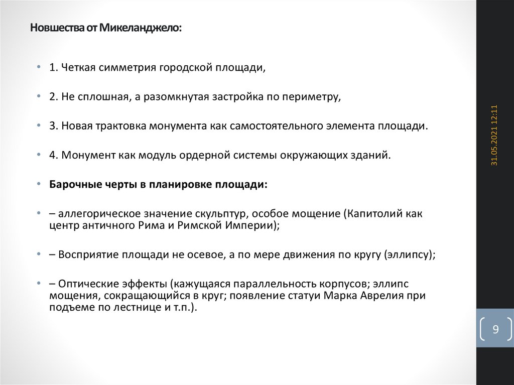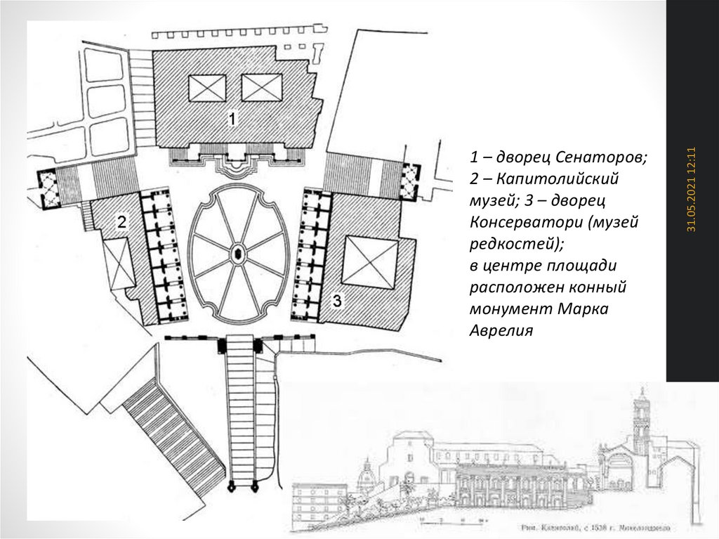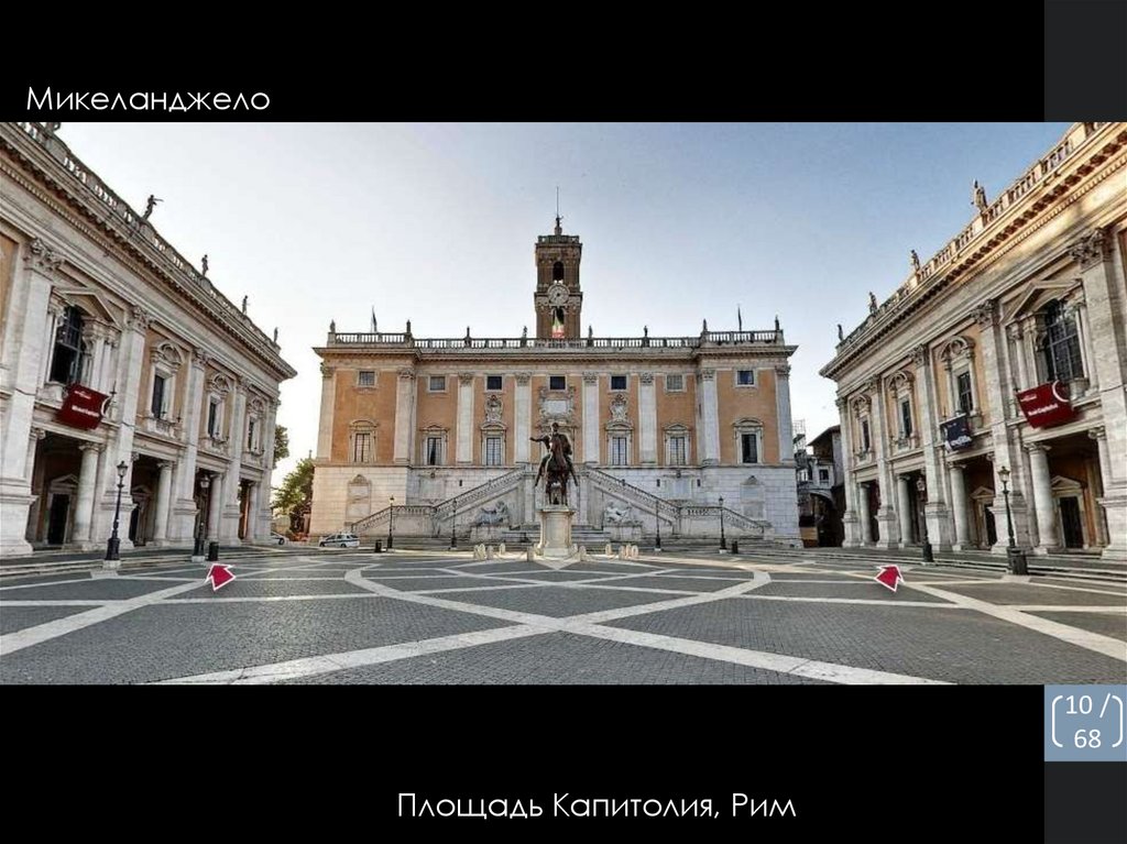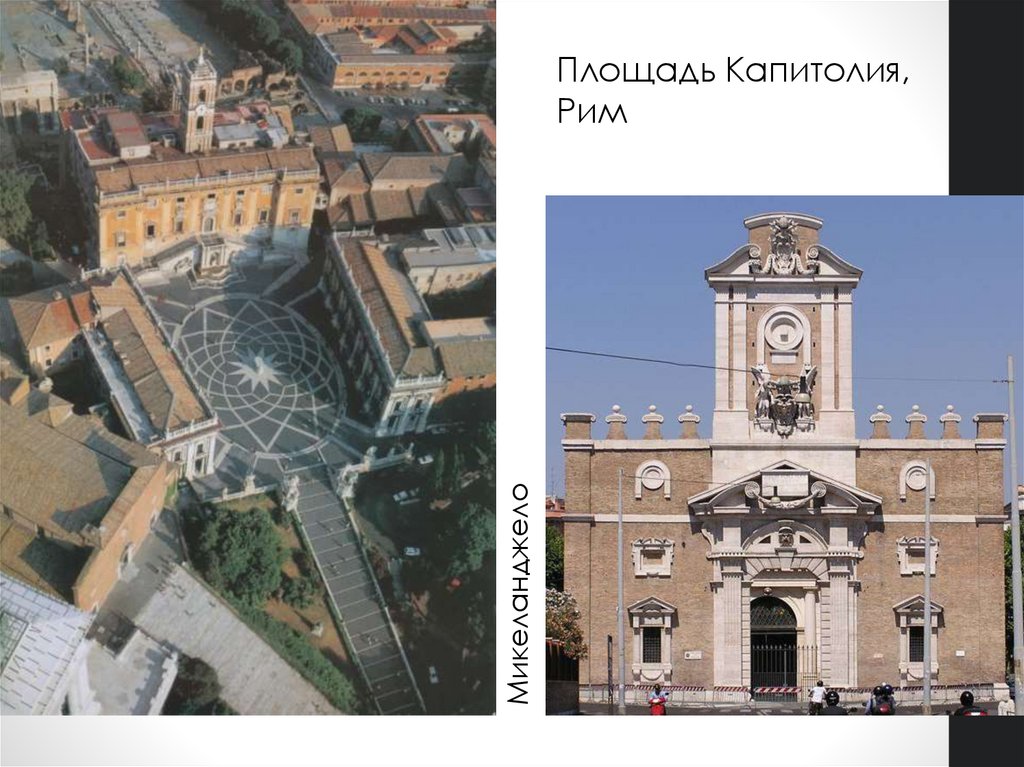 Новшества от Микеланджело:• 1. Четкая симметрия городской площади,
