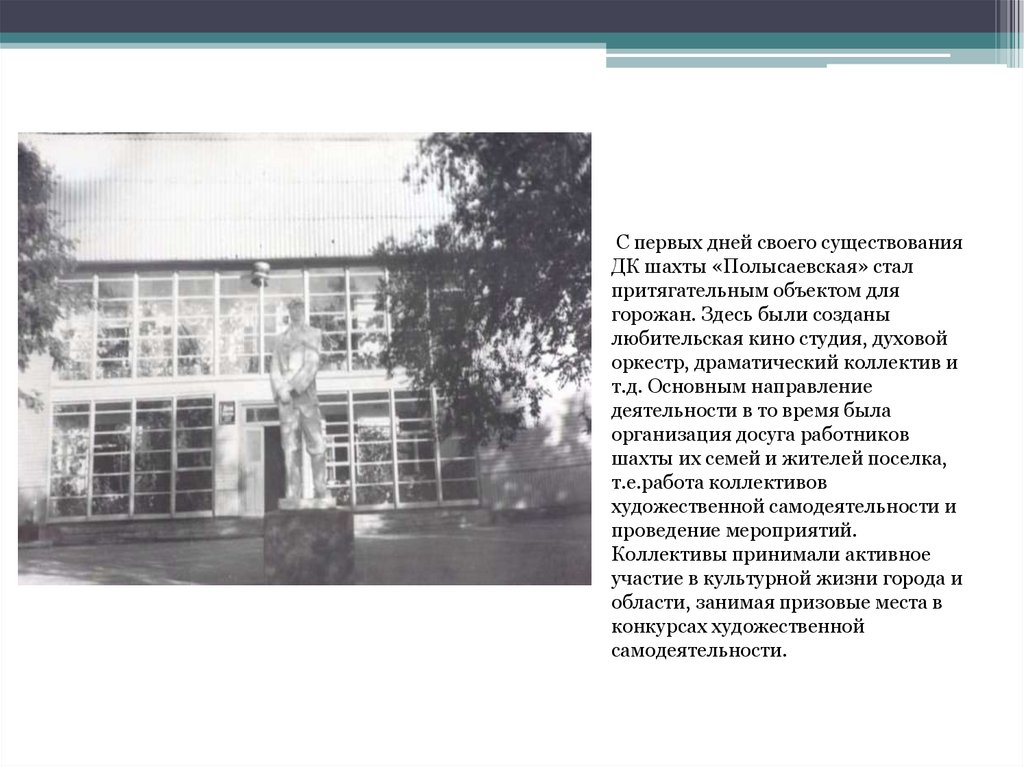 С первых дней своего существованияДК шахты «Полысаевская» стал
