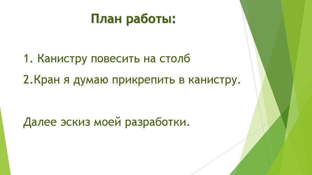 План работы:1. Канистру повесить на столб
