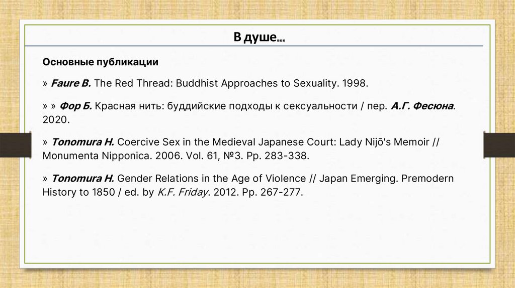 » Faure B. The Red Thread: Buddhist Approaches to Sexuality. 1998.