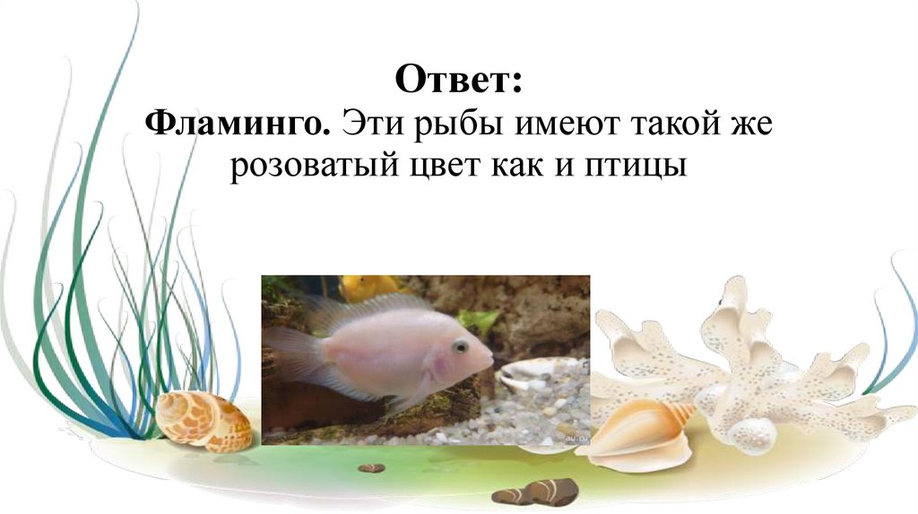 Ответ:Фламинго. Эти рыбы имеют такой же