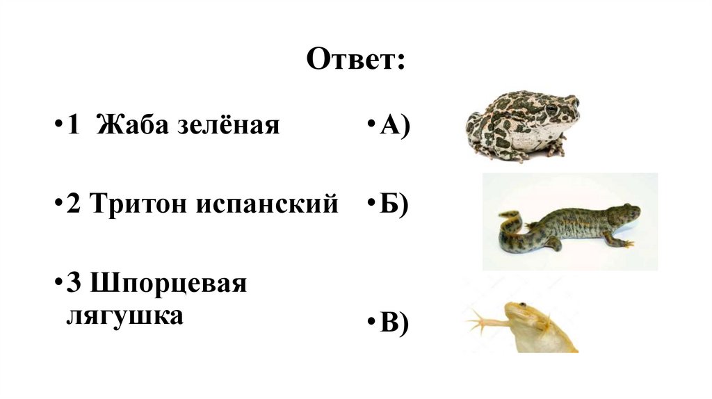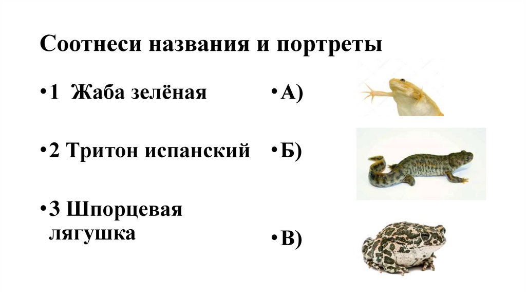 Соотнеси названия и портреты• 1 Жаба зелёная