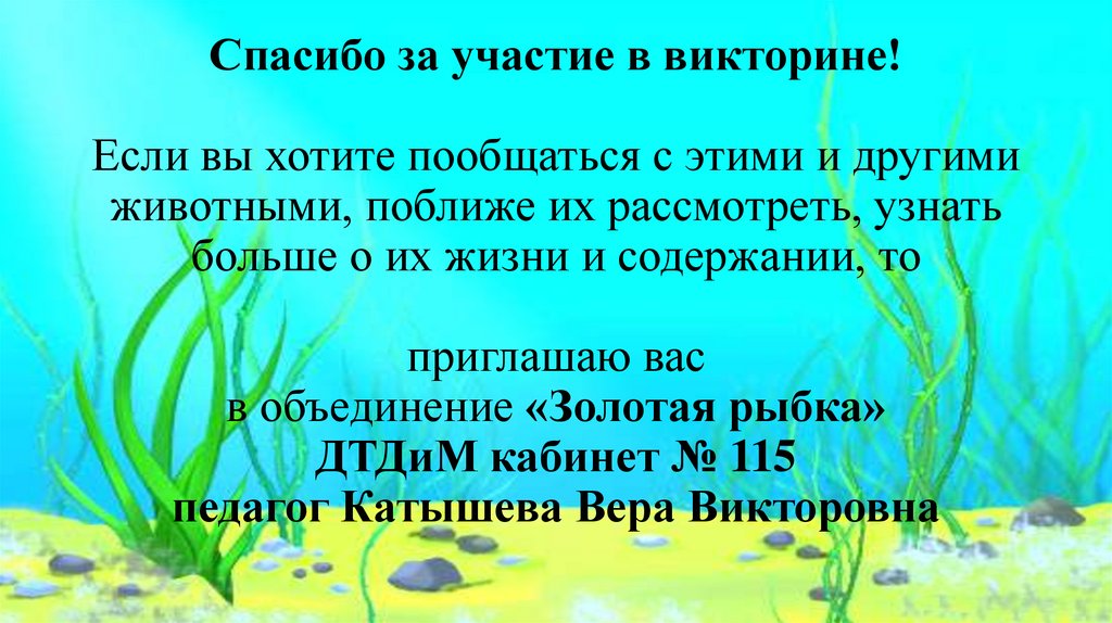 Викторина к видеоклубу« Путешествие в подводный мир»