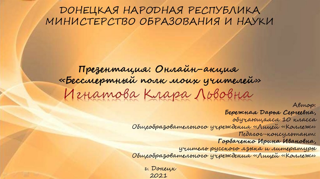 ДОНЕЦКАЯ НАРОДНАЯ РЕСПУБЛИКАМИНИСТЕРСТВО ОБРАЗОВАНИЯ И НАУКИ