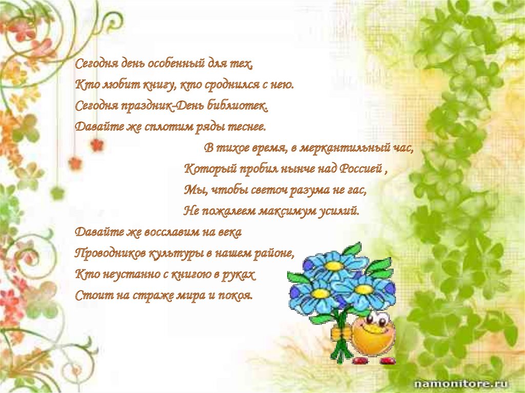 Сегодня день особенный для тех,Кто любит книгу, кто сроднился с нею.