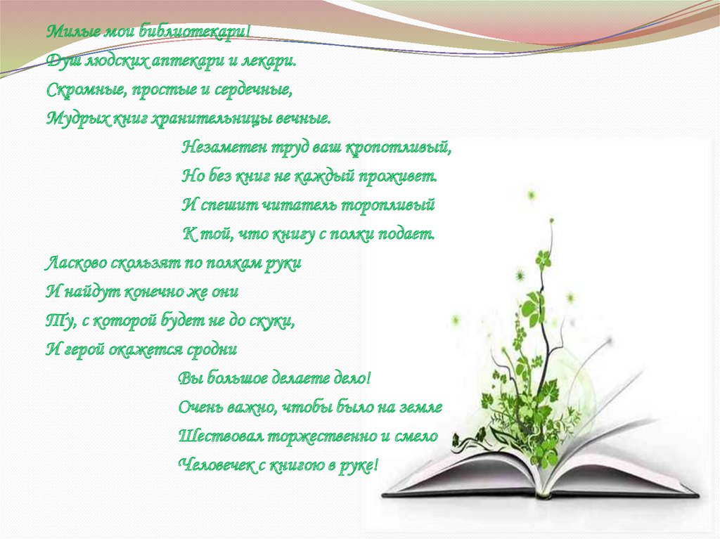 Милые мои библиотекари!Душ людских аптекари и лекари.