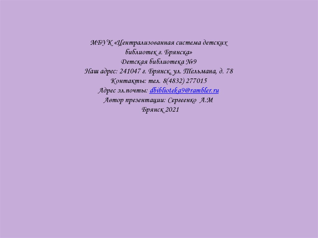Адрес эл.почты: dbiblioteka9@rambler.ru