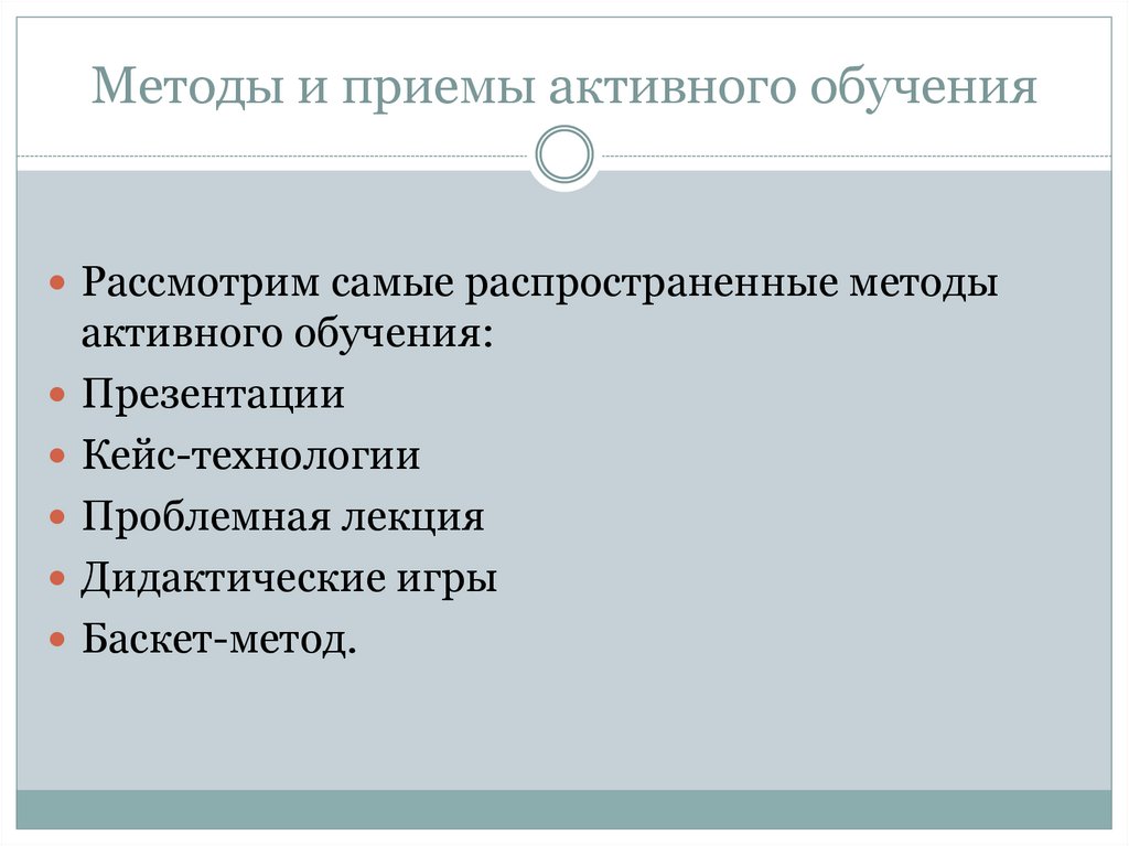 Методы и приемы активного обученияРассмотрим самые распространенные методы