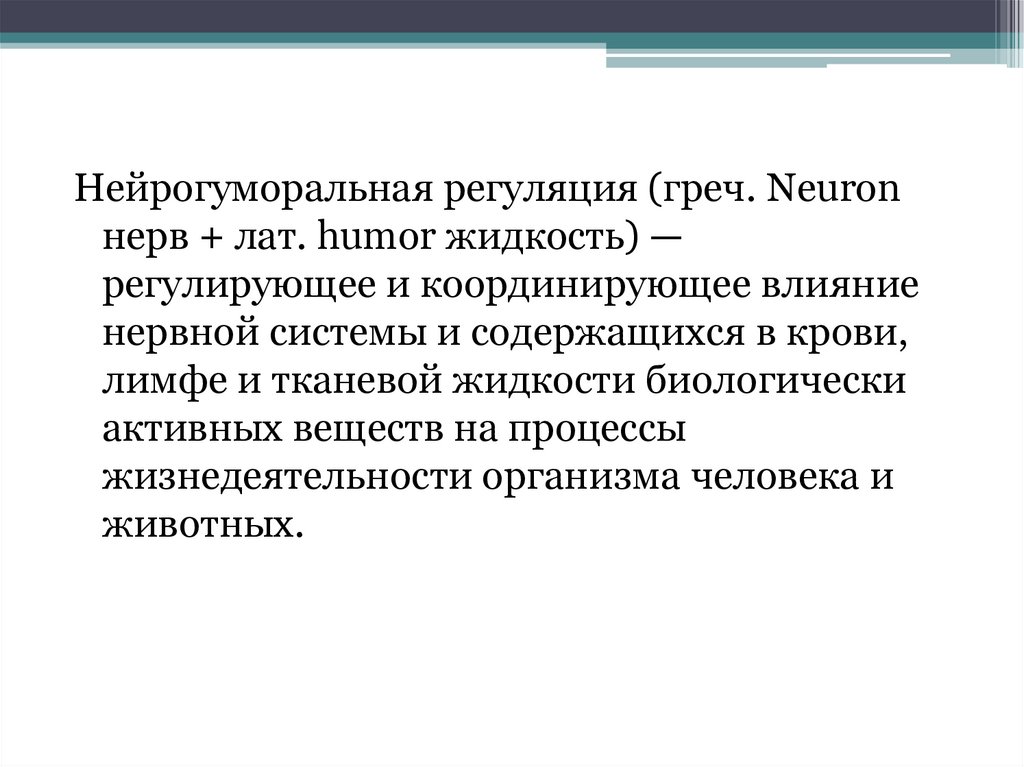 Нейрогуморальная регуляция (греч. Neuronнерв + лат. humor жидкость) —