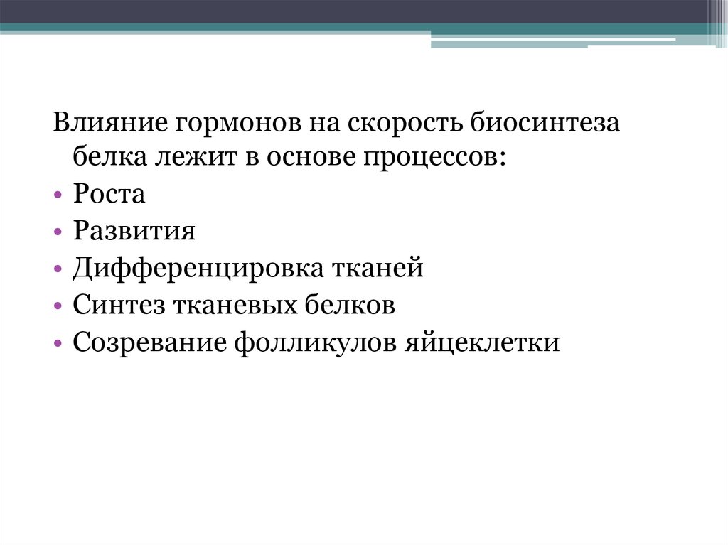 Влияние гормонов на скорость биосинтезабелка лежит в основе процессов: