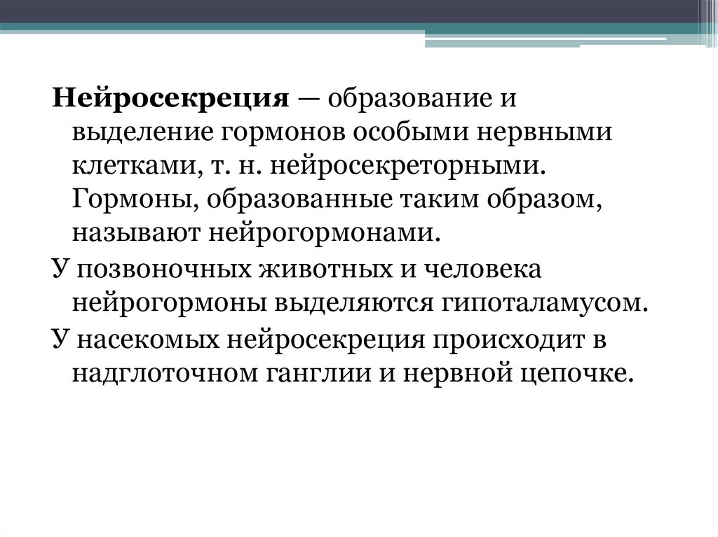 Нейросекреция — образование ивыделение гормонов особыми нервными