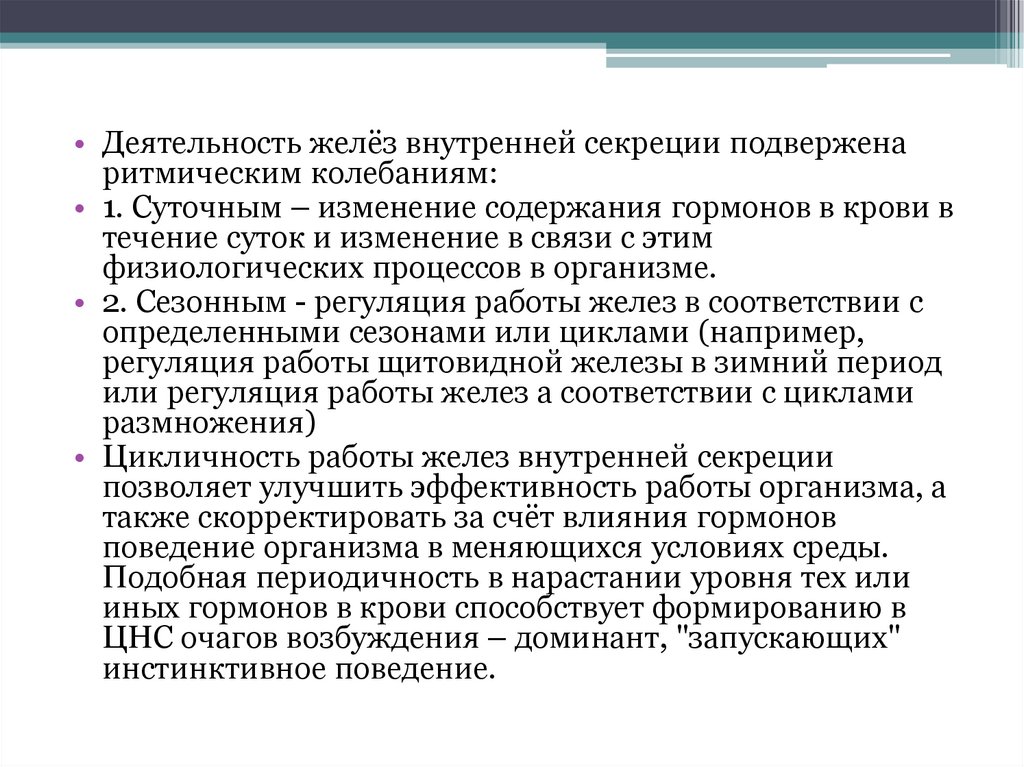 • Деятельность желёз внутренней секреции подверженаритмическим колебаниям: