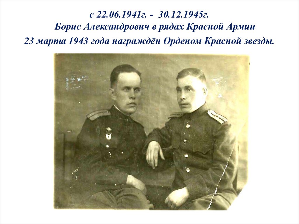 с 22.06.1941г. - 30.12.1945г.Борис Александрович в рядах Красной Армии