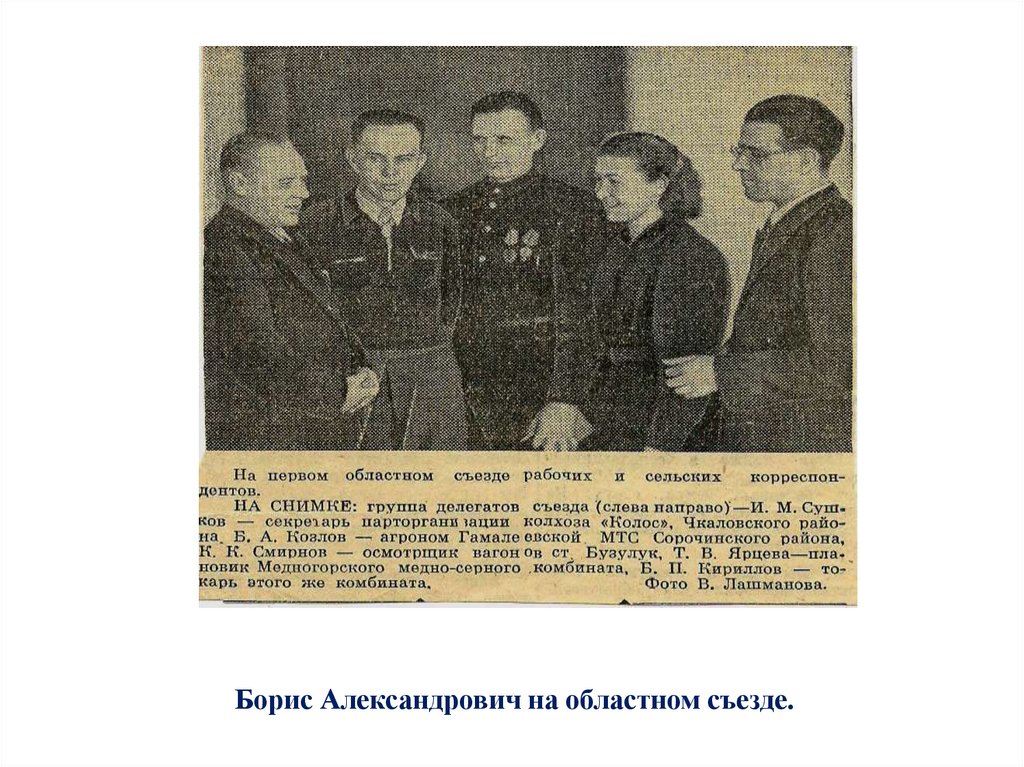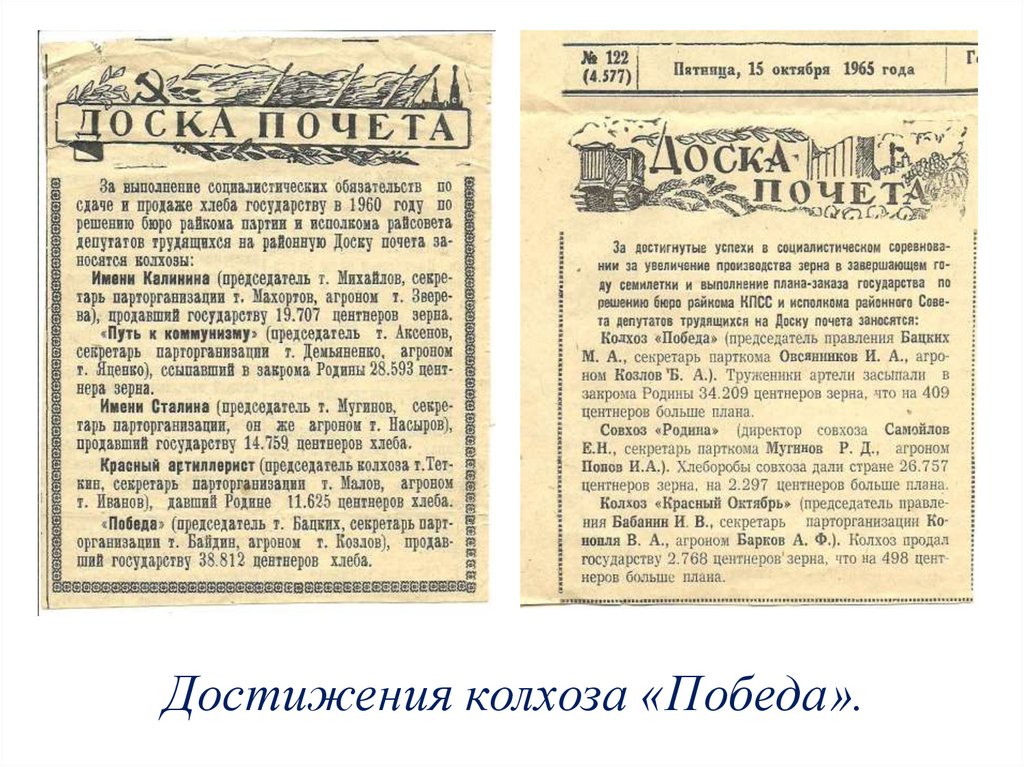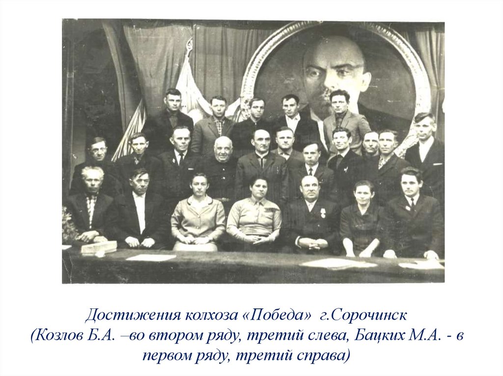 Достижения колхоза «Победа» г.Сорочинск(Козлов Б.А. –во втором ряду, третий слева, Бацких М.А. - в