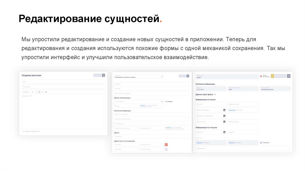 Редактирование сущностей.Мы упростили редактирование и создание новых сущностей в приложении. Теперь для
