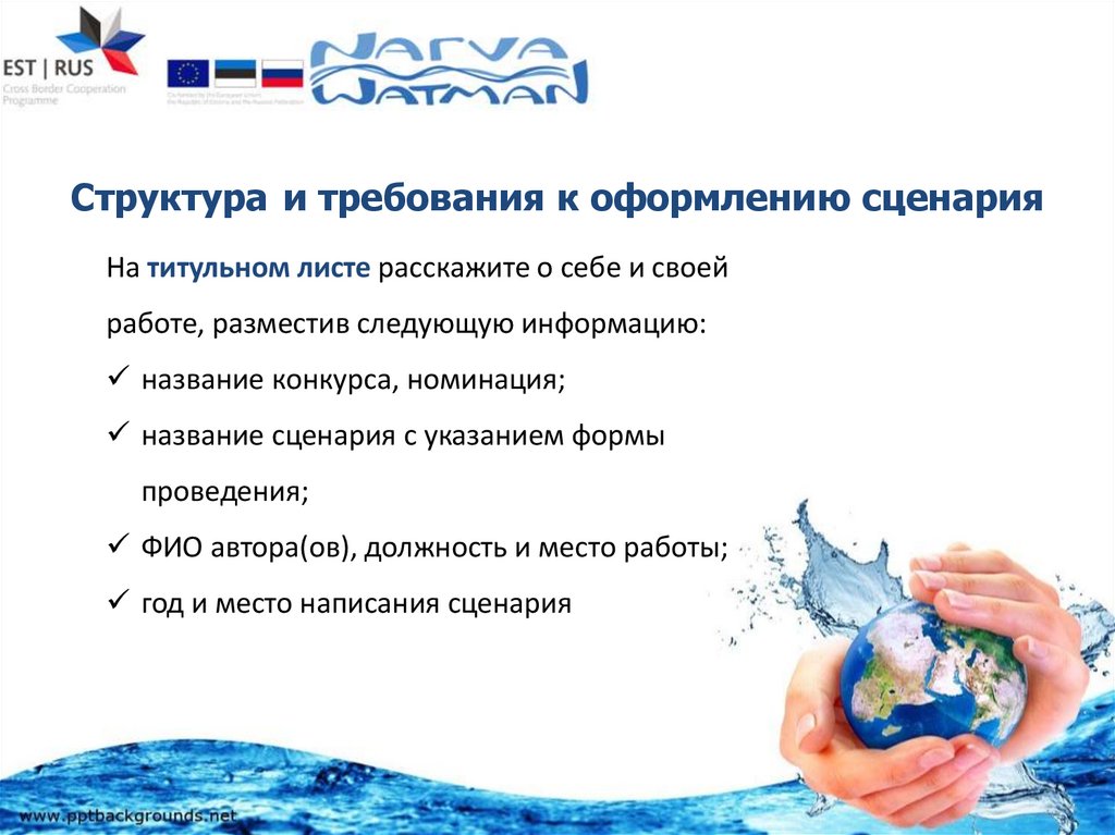 Структура и требования к оформлению сценарияНа титульном листе расскажите о себе и своей