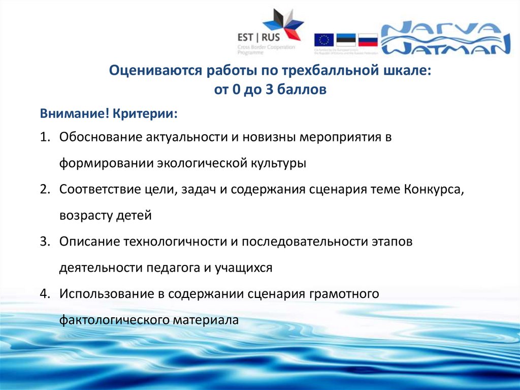 Оцениваются работы по трехбалльной шкале:от 0 до 3 баллов