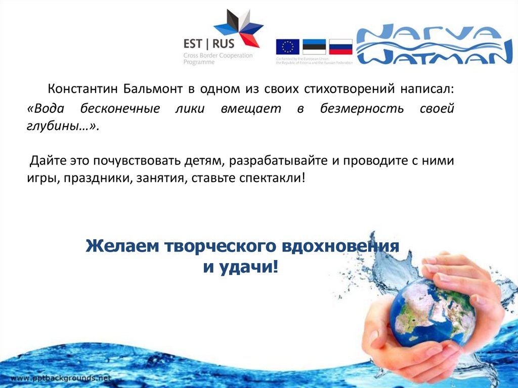 Константин Бальмонт в одном из своих стихотворений написал:«Вода бесконечные лики вмещает в безмерность своей