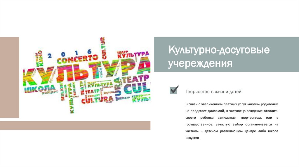 у родителей есть возможность выбирать, куда будет ходить ребенок: в детский сад или в досуговые детские